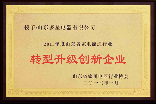 2015年度山東省家電流通行業(yè)“轉(zhuǎn)型升級創(chuàng)新企業(yè)”三項(xiàng)殊榮!