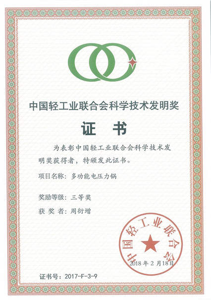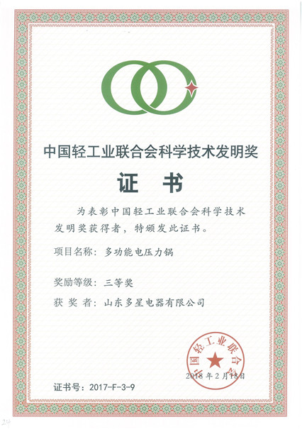 其中山東多星電器有限公司生產(chǎn)的多星多功能電壓力鍋榮獲科學(xué)技術(shù)發(fā)明獎!